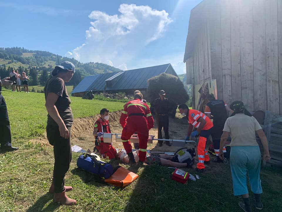 ACTUALIZARE – Salvatorii montani maramureșeni au fost anunțați, prin 112, că o femeie, care se afla la strâns fânul, a fost călcată de o mașină 4×4, suferind multiple traumatisme la nivelul coloanei și bazinului.