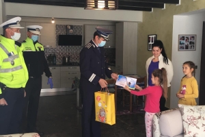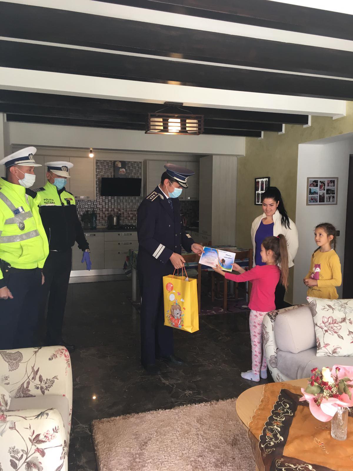 Alături de ofiţerul Vis, polițiștii au oferit premii câștigătorilor concursului „Pandemia nu fură copilăria!” (GALERIE FOTO)