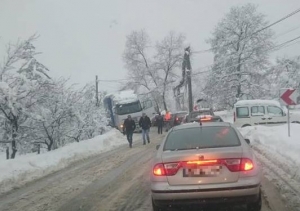 Iarna grea le dă mari dureri de cap șoferilor. În urma unui accident (din fericire ușor) două mașini au ajuns în șanțul de pe marginea drumului.