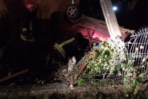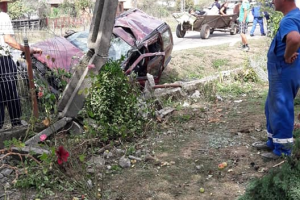Au dat cu mașina în gard și-n stâlp, dar au scăpat cu viață