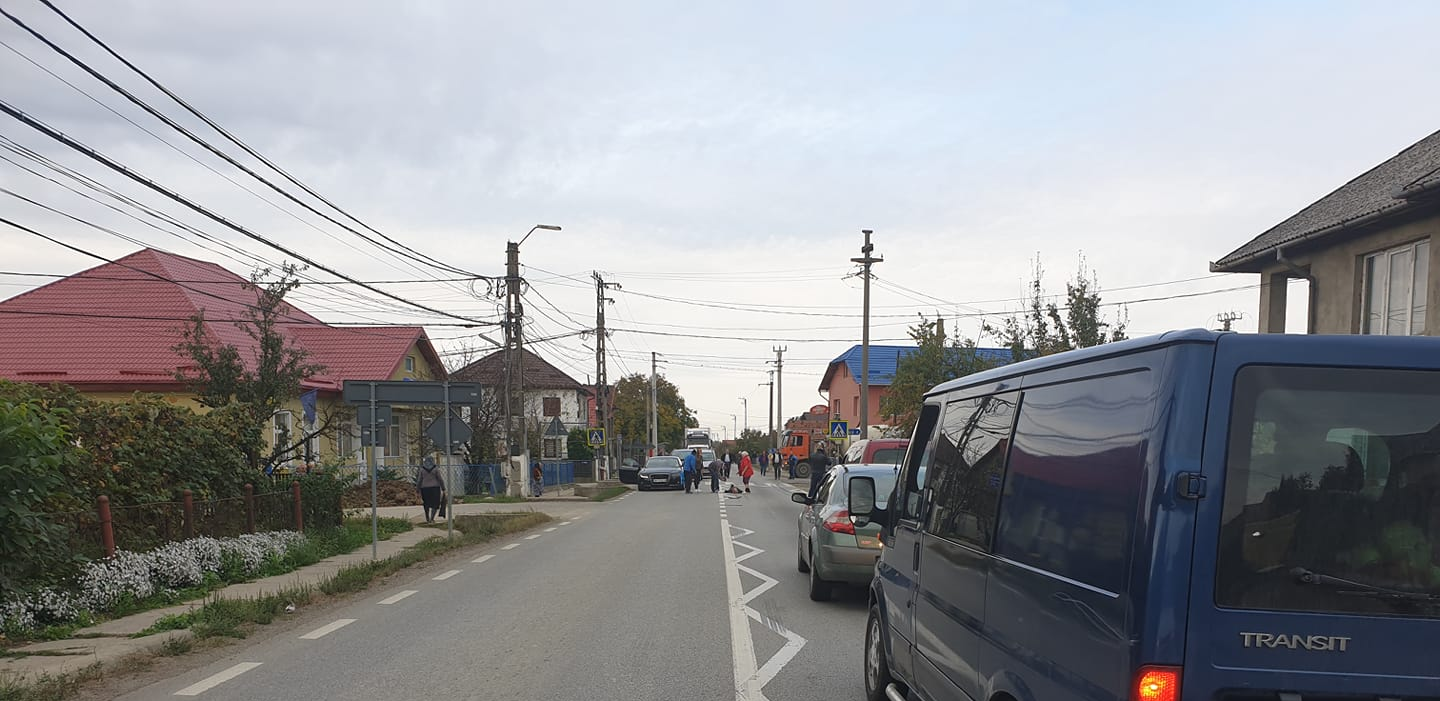 O coloană imensă s-a format astăzi în Lăpușel. Nu pentru că de dimineață lumea ar fi dat buluc la Sărbătoarea Castanelor, ci din cauza unui accident rutier. Un bărbat a fost lovit la o trecere de pietoni. Traversa pe jos, pe lângă bicicleta care, în urma impactului, a fost aruncată la mare distanță de trecere.