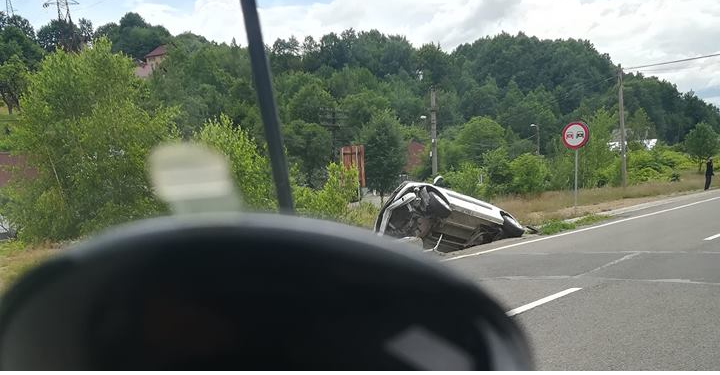 În șanț a ajuns și un autoturism la intrarea în Baia Sprie, dar cu o zi înainte. Nici în acest caz nu au fost victime, iar de vinăa fost numai neatenția. (vezi foto).