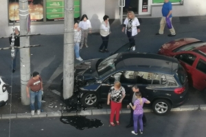 Tamponiada continuă. Etapa de astăzi, 24 octombrie s-a desfășurat pe bulevardul Republicii din Baia Mare, Două mașini s-au cam tamponat, dar numai una a fost proiectată în stâlp, atingând puțin și alt autoturism. Vorba unui martor; ”Stâlpul a ieșit cel mai bine de aici”.
