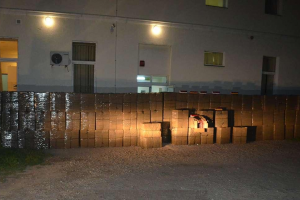 CAPTURĂ ZDRAVĂNĂ DE ȚIGĂRI. Așa arată o seară bună (sau poate un pont bun) pentru polițiștii de frontieră de la Sighet.