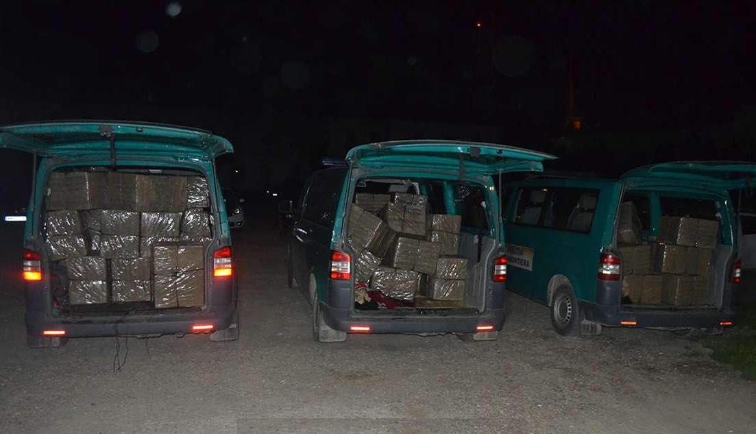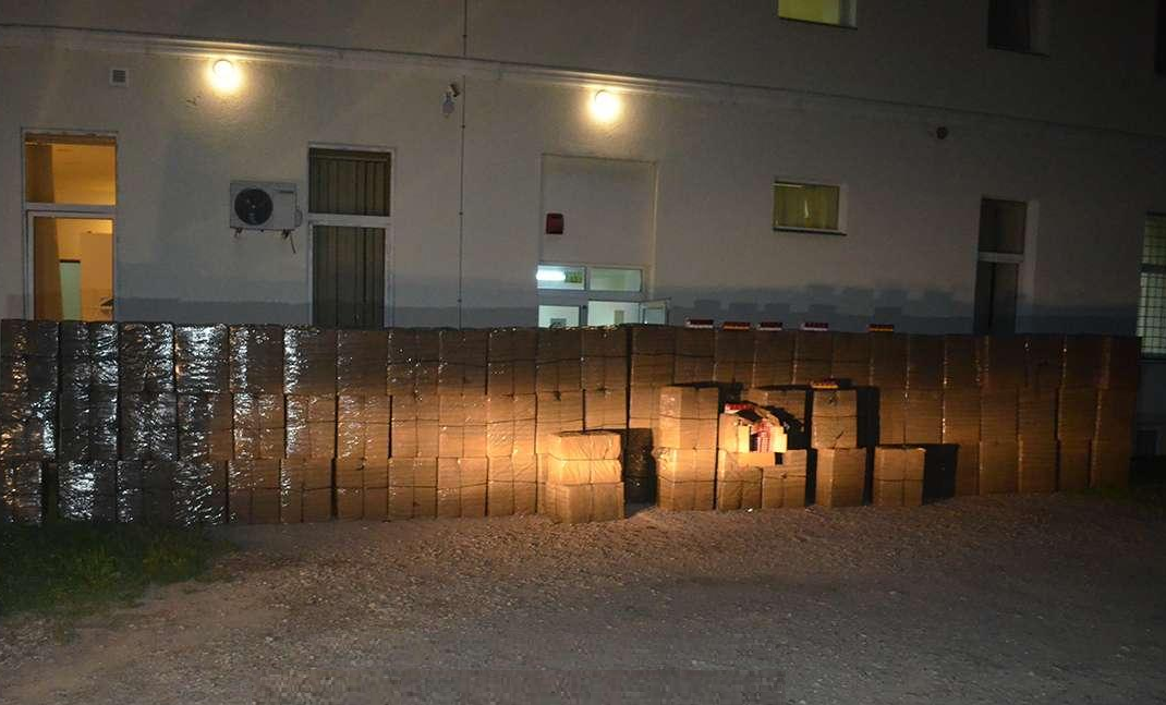 CAPTURĂ ZDRAVĂNĂ DE ȚIGĂRI. Așa arată o seară bună (sau poate un pont bun) pentru polițiștii de frontieră de la Sighet.