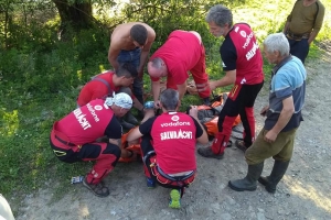 Intervenție a salvamontiștilor după ce un bărbat a căzut într-o râpă (GALERIE FOTO)