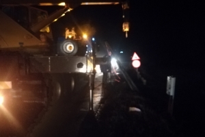 Un stâlp de electricitate s-a înclinat periculos deasupra drumului, la ieșirea din localitatea Groși, acolo unde încep curbele spre dispărutul Popas Regal. Este zona în care, cu ani în urmă au avut loc alunecări de teren. Pe fondul ploii, care a îmbibat terenul, stâlpul s-a înclinat la circa 45 de grade înspre carosabil, cu tendință de a-și continua înclinarea. Fără o intervenție rapidă, s-ar fi prăbușit pe drumul foarte circulat la această oră, putând genera o tragedie. Din fericire, două utilaje au sosit prompt la fața locului și acum (în jurul orelor 18.45) îndreaptă și ancorează stâlpul. Cât timp va mai dura intervenția, în dreptul celor două utilaje se circulă pe o singură bandă.