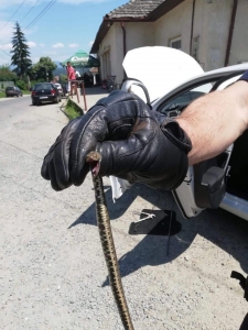 Intervenție ieșită din comun: Șarpe găsit într-o mașină parcată în centrul comunei Coltău (FOTO)