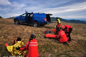 Intervenție în Maramureș: O sătmăreancă a avut nevoie de ajutorul salvamontiștilor după ce a alunecat la coborârea de pe Creasta Cocoșului (VIDEO ȘI GALERIE FOTO)