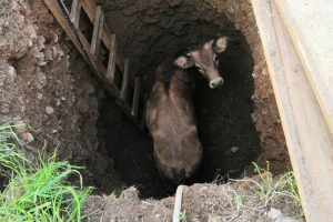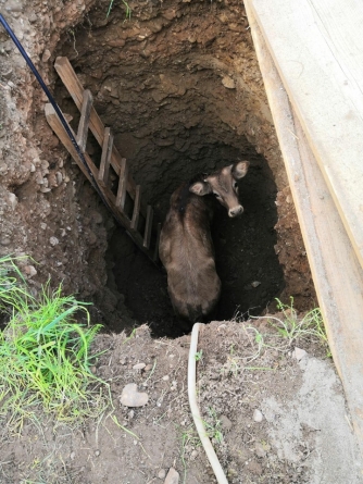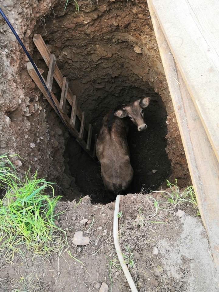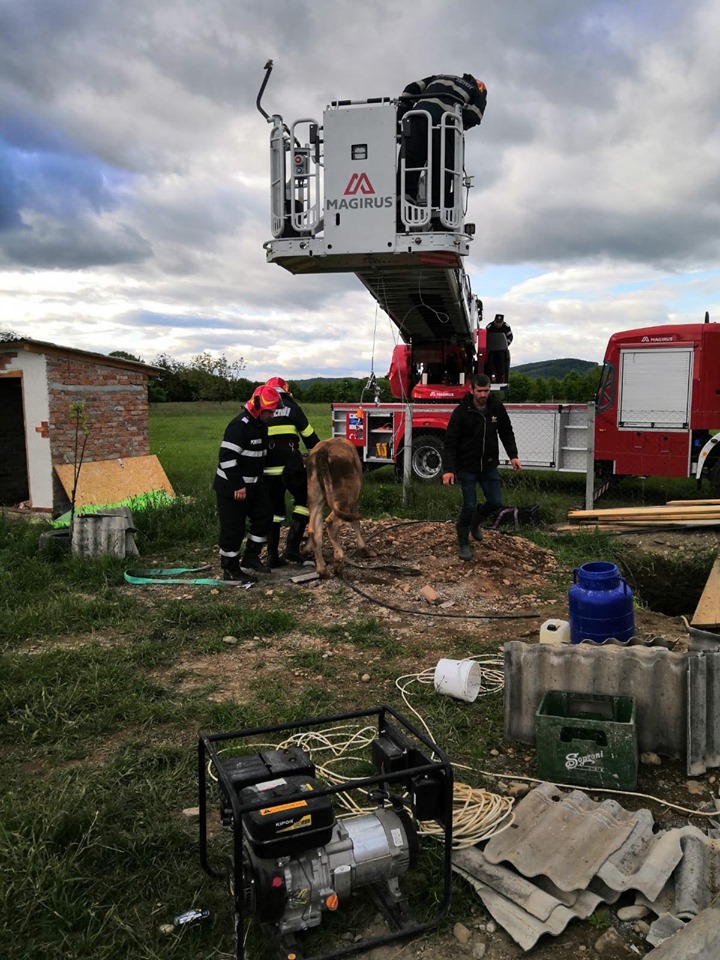 În cele din urmă, totul s-a terminat cu bine. Văcuța a fost legată corespunzător și scoasă cu bine la suprafață. Întreaga intervenție a durat mai puțin de o oră.