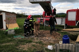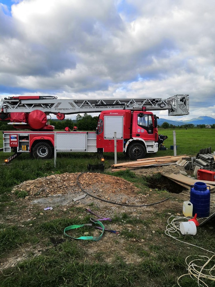 Intervenție inedită, sâmbătă, 26 mai, la orele serii, în Sighetu Marmației. Un bărbat a cerut ajutorul pompierilor după ce o văcuță a căzut într-o fântână secată aflată la ieșirea din municipiu.