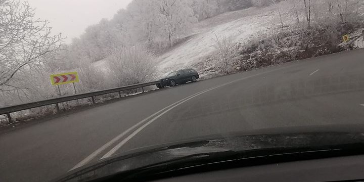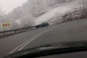 Probleme cu oprirea a avut și un șofer ce se deplasa după masă pe Mesteacăn, dar l-a ajutat un parapet de pe marginea drumului.