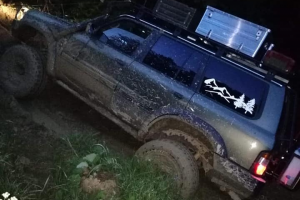 O familie poloneză, împotmolită pe un drum forestier, a fost recuperată de salvamontiști din Vișeu (GALERIE FOTO)