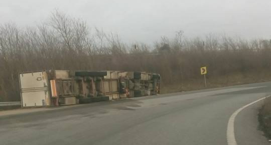 Tir răsturnat. Ieri, încă un autotren (înmatriculat în Republica Moldova), s-a răsturnat pe Mesteacăn, la urcare dinspre Dej spre Baia Mare. Tirul încă nu fusese repus pe roți în prima parte a zilei de astăzi. În urmă cu două săptămâni, pe Mesteacăn se răsturnase un TIR cu număr din Moldova noastră.