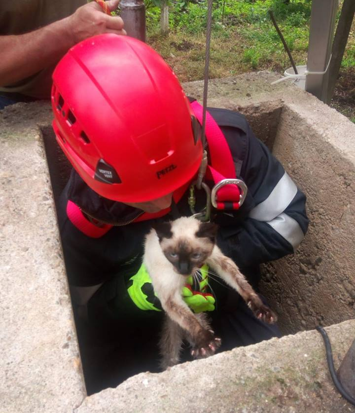 Pompierii băimăreni au intervenit pentru a salva un pui de pisică. Pisicuța căzuse într-un puț, spre disperarea stăpânei. Spre fericirea ei, pompierii au recuperat-o rapid, întreagă și nevătămată. ”E bine când totul se termină cu bine!” -spun pompierii, cu modestie, în postarea de pe rețeaua de socializare a ISU Maramureș