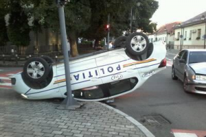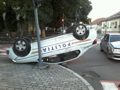 Nu demult o mașină a poliției maramureșene a ajuns pe plafon. Exemplul a fost urmat și în partea civilă a populației (vezi similitudinile în galeria foto).