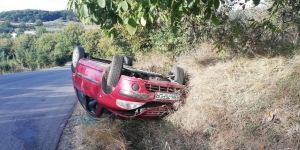 Sâmbătă, 14 septembrie, un șofer din Crăciunești cobora Dealul Hera înspre Petrova. La o curbă periculoasă nu și-a strunit bine mașina, a părăsit partea carosabilă, a ajuns cu ea pe un povârniș de lângă drum și s-a răsturnat pe plafon (vezi foto sus).