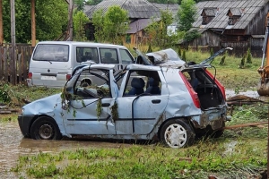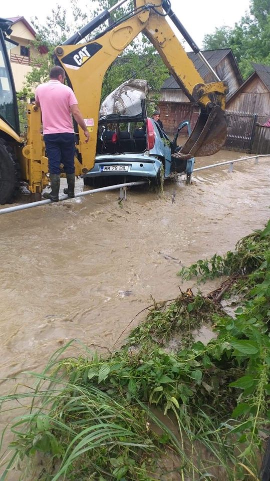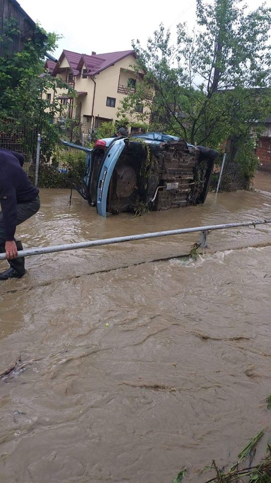 Actualizare 3 – Potop în Maramureș: Peste o sută de gospodării izolate parțial, autoturisme luate de ape și intervenții în tot Maramureșul Istoric după ruperea de nori (VIDEO ȘI FOTO)