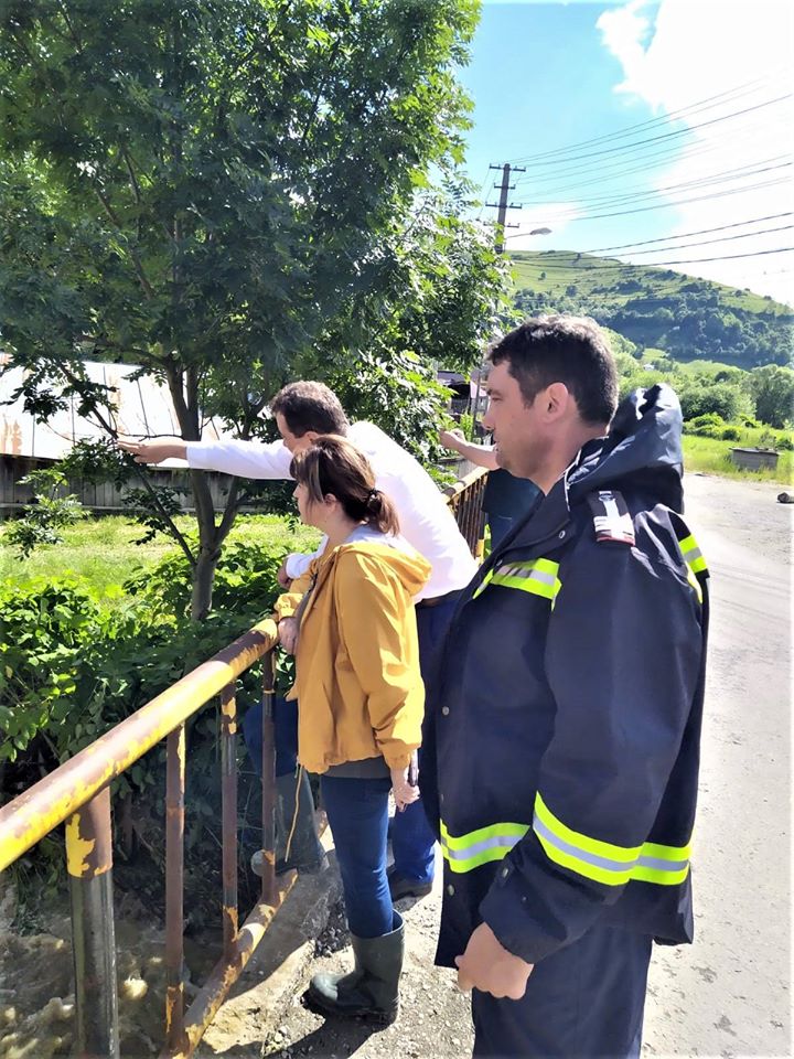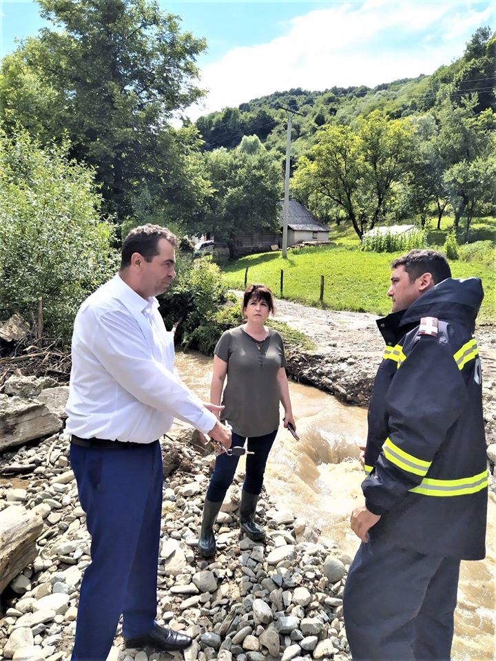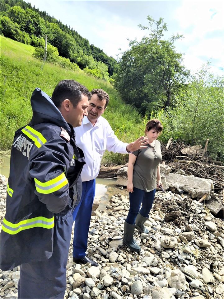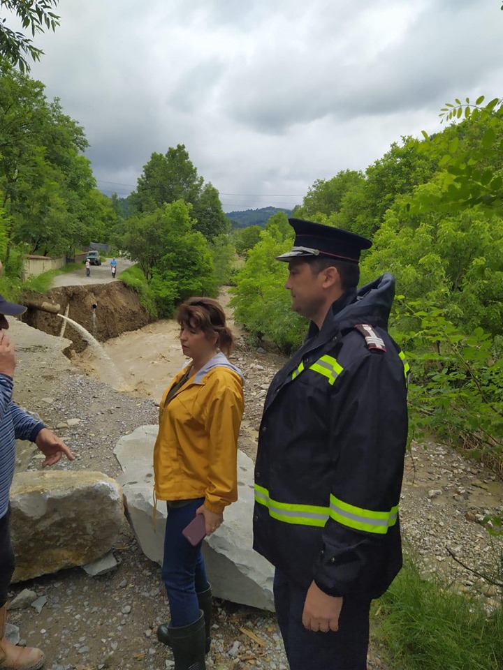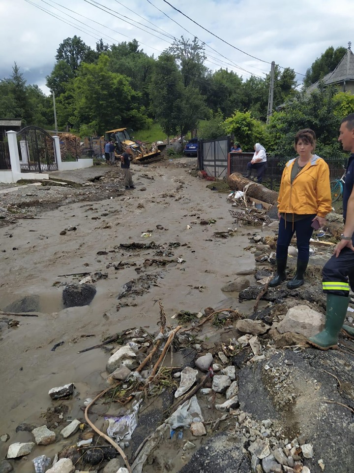 ACTUALIZARE 3 – Precipitațiile torențiale căzute în comuna Vișeu de Jos au condus la formarea de torenți pe versanți. Scurgerile de apă au crescut debitele și nivelurile unor văi și pâraie care s-au revărsat și au inundat patru gospodării. De asemenea, șuvoaiele de apă au transportat aluviuni, pietriș, material vegetal și material lemnos care au colmatat mai multe podețe. Au fost afectate de revărsarea apelor mai multe hectare de teren arabil, străzi și ulițe, respectiv erodate un zid de sprijin și maluri. Subprefectul Oana-Mihaela Oșanu s-a deplasat în zonă, în sprijinul cetățenilor afectați de inundații și a coordonat acțiunile pompierilor militari și ale autorităților administrației publice locale de evacuare cu motopompe a apelor din gospodării, decolmatarea podețelor, șanțurilor și rigolelor, îndepărtarea aluviunilor rămase după retragerea apelor de pe străzi și ulițe.