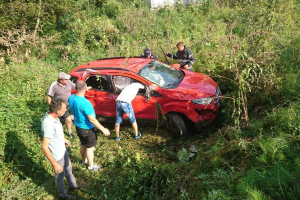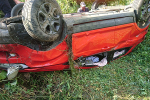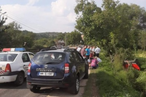 S-a răsturnat cu mașina în care se aflau și doi minori