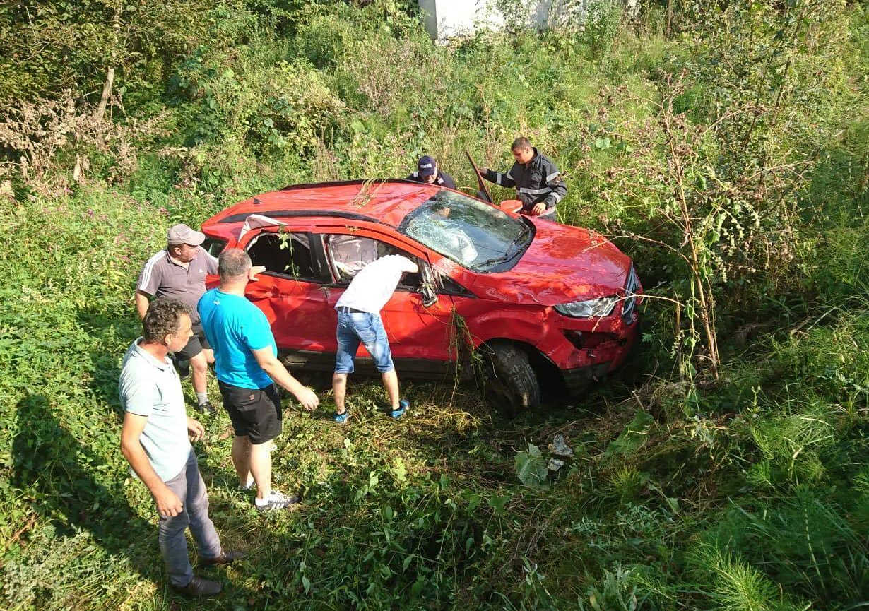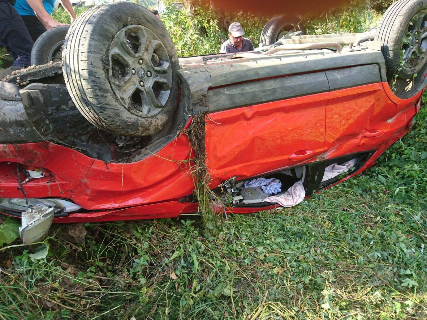 S-a răsturnat cu mașina în care se aflau și doi minori