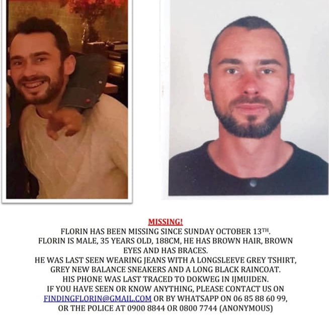 Semnalentele acestuia sunt: 35 de ani, 1,88 m înălțime, brunet, ochi căprui, poartă aoarat dentar. Ultima dată când a fost văzut purta blue-jeans, tricou gri cu mânecă lungă, pantofi sport ”New Balance” și o geacă lungă de ploaie. La el nu avea nici pașaportul, nici cardurile bancare. Cei care pot oferi informații sunt rugați să le furnizeze la contactele whatsapp 06 85 88 60 99 sau la adresa de e-mail findingflorin@gmail.com ori să anunțe poliția (cea din Olanda la 0900 8844 sau 0800 7744).