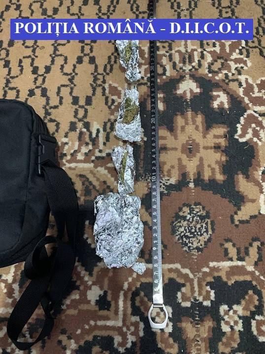În urma perchezițiilor, au fost ridicate, în vederea confiscării, droguri de risc, sub formă de fragmente vegetale mărunțite, împachetate în folii de aluminiu aprox. 130 grame cannabis, 5 comprimate MDMA, 1,3 grame MDMA pulbere, țigarete confecționate artizanal, obiecte folosite la prepararea și cântărirea drogurilor, 59 de pachete țigări de proveniență ucraineană, un pistol tip revolver calibru 9 mm și un tub cartuș, 14.950 lei, 2.175 Euro, 7 telefoane mobile, o tabletă și un laptop.