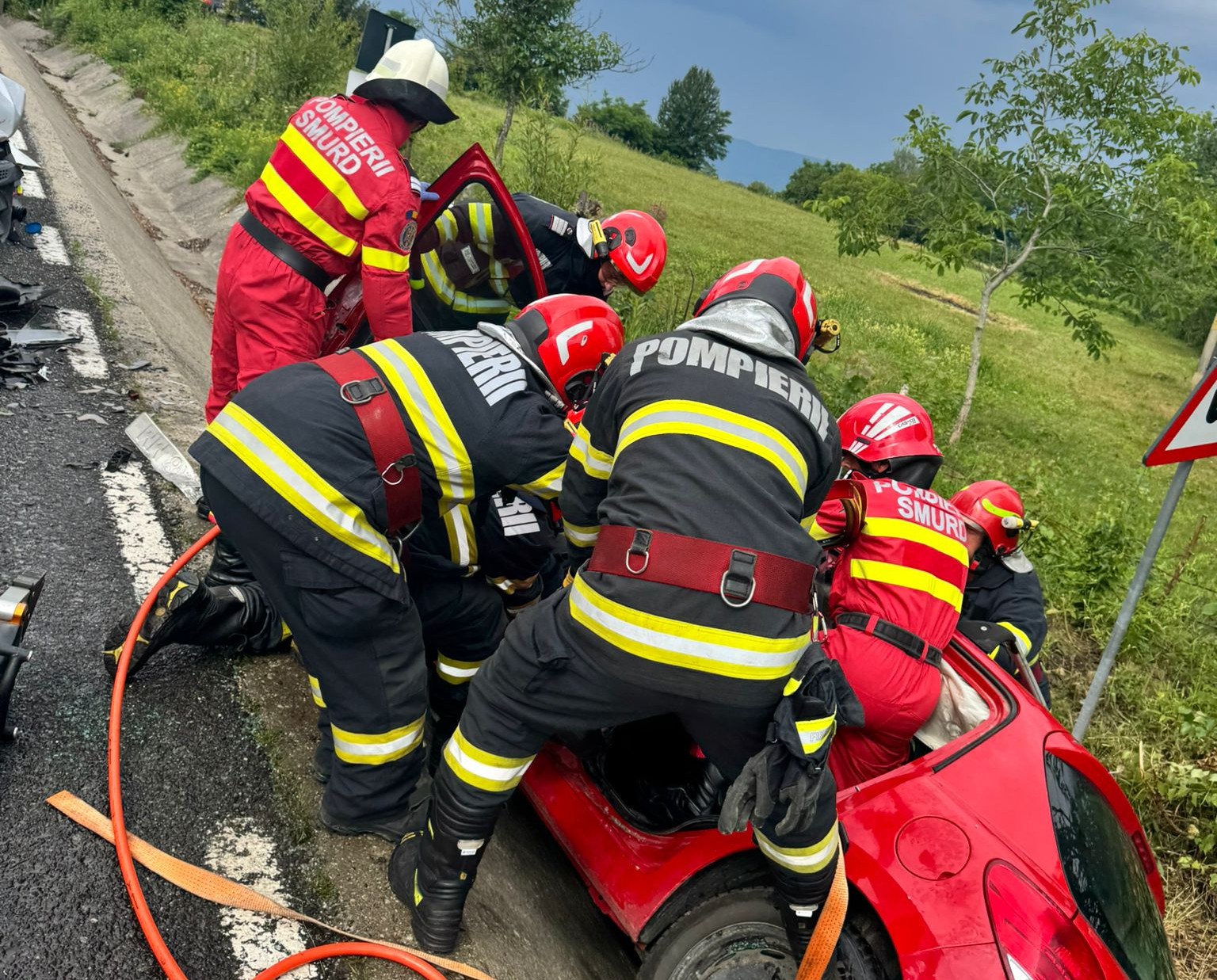 ”Au fost alocate trei echipaje de prim ajutor SMURD, un echipaj de descarcerare, o autospecială de stingere cu apă și spumă, un echipaj de Terapie Intensivă Mobilă, un echipaj al Serviciului de Ambulanță Județean. Totodată s-a solicitat și intervenția elicopterului SMURD Jibou, având în vedere că, în urma evenimentului, în autoturismul ricoșat în șanț se aflau patru persoane, din care două persoane încarcerate. Cele două persoane aflate în microbuz s-au autoevacuat, conștiente și cooperante”, a informat ISU Maramureș.