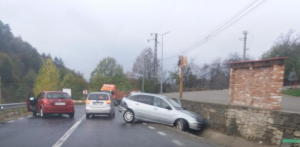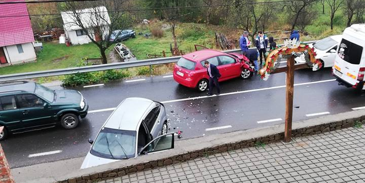 O depășire în curba de la Dănești, cam pe unde e Hanul Teilor a determinat tamponarea din imagini. Doar presupunem că, după întâmplarea de azi dimineață, șoferul Ford-ului care a făcut depășirea și-ar fi zis: „la han n-oi mai depăși șohan ”.