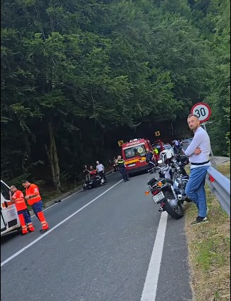 Se pare că este vorba de un motociclist lovit de un autoturism.
