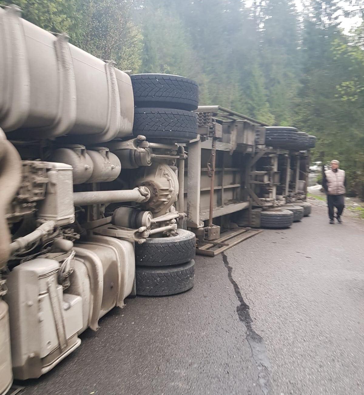Un tir s-a răsturnat pe DN 18, în Borșa (GALERIE FOTO & VIDEO)