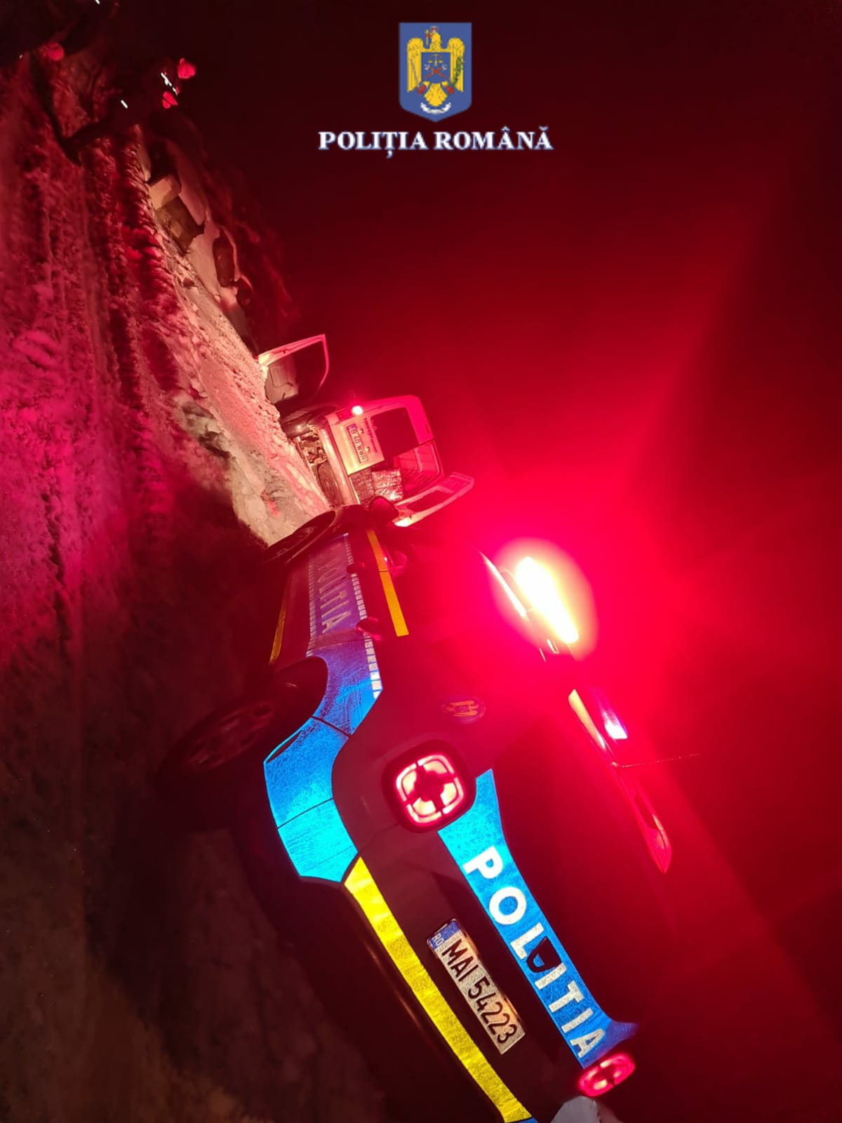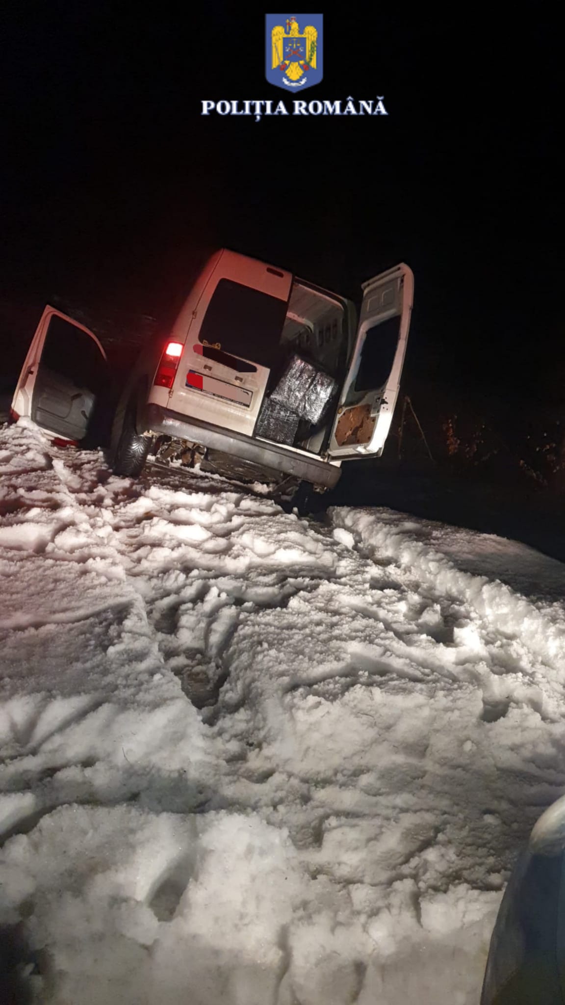 Datorită condițiilor nefavorabile și a drumului forestier acoperit cu zăpadă, autoturismul urmărit a părăsit drumul forestier oprindu-se într-o vale.