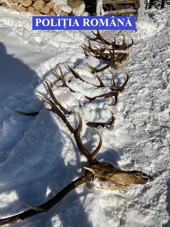 În cadrul perchezițiilor au fost identificate două arme de vânătoare, un revolver și 130 de cartușe de vânătoare cu capsele nepercutate, toate deținute ilegal, un dispozitiv pentru atenuarea zgomotului(amortizor), 12 coarne de cerb nepereche, șase copite de căprior, doi crotali pentru vânat și un dispozitiv de vedere pe timp de noapte.