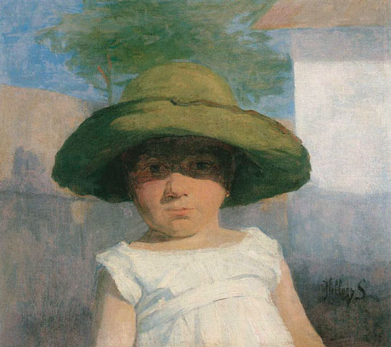 Hollósy 1900: Simon Hollósy, Potret de fetiță cu o pălărie verde, circa 1900, Baia Mare, ulei pe pânză, 43,3 × 48,7 cm, © Szépművészeti Múzeum – Magyar Nemzeti Galéria: