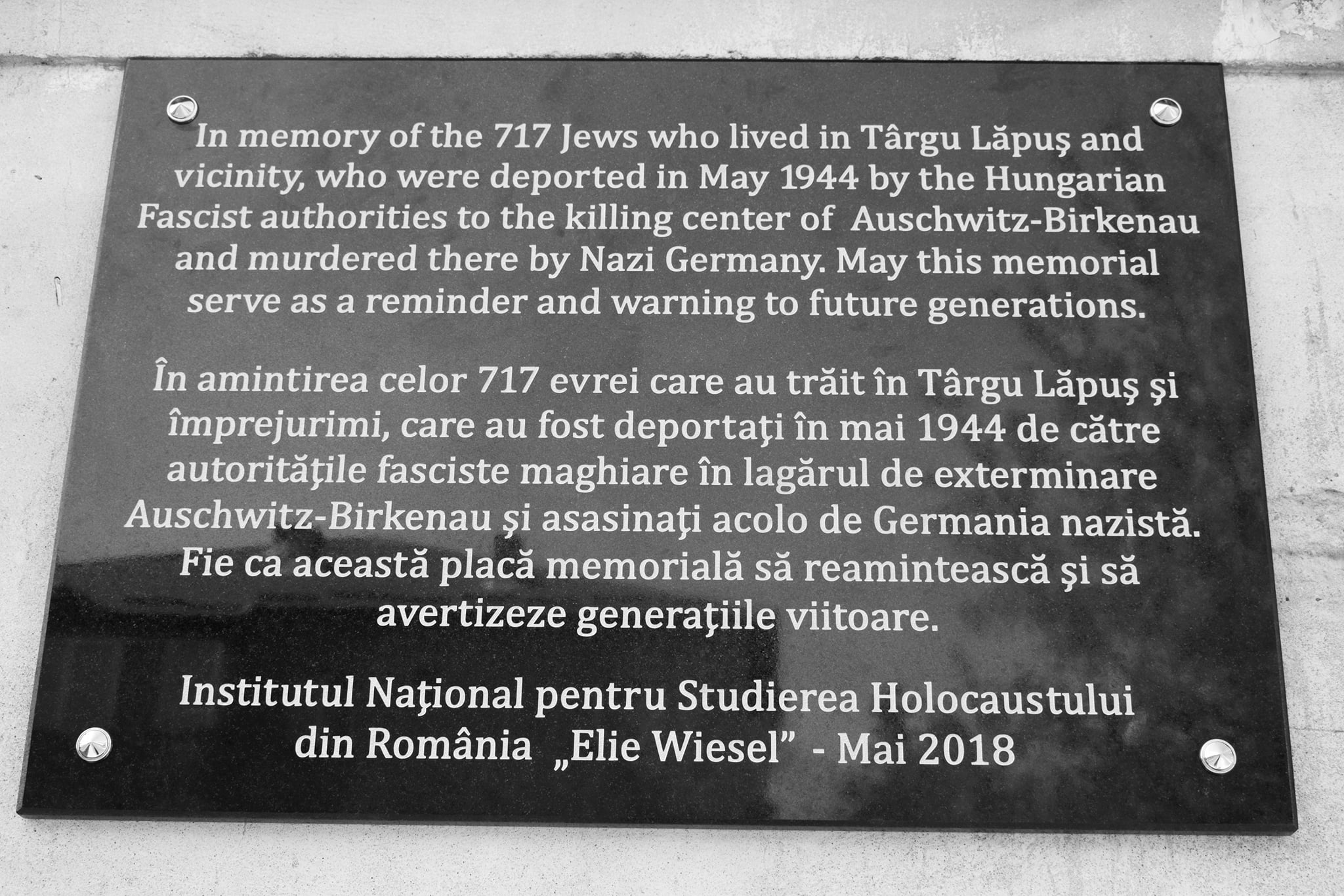 27 ianuarie este Ziua Internațională de Comemorare a Victimelor Holocaustului, iar anul acesta se marchează 77 de ani de la eliberarea Lagărului de la Auschwitz. „Înainte de perioada interbelică, în Tg. Lăpuş a existat o colectivitate evreiască şi o sinagogă impunătoare, pe str. Liviu Rebreanu, dărâmată în 1980. Trecerea şi viaţa evreilor pe aceste meleaguri o dovedesc cele circa 600 de morminte rămase. În 4 mai 2018, în apropierea centrului oraşului Tg. Lăpuş, în prezenţa a sute de cetăţeni şi oficialităţi, a avut loc Ceremonia de dezvelire a unei plăci comemorative, care va păstra vie memoria victimelor Holocaustului. Iniţiativa instalării plăcii comemorative îi aparţine doamnei Amy McDonald, profesor de ştiinţe sociale la Liceul Shades Valley din Birmingham, Alabama, S.U.A, care a publicat o carte despre viaţa lui Max Steinmetz: „Determinat să supravieţuiesc”, supravieţuitor al Holocaustului, care s-a născut în Tg. Lăpuş”, arată reprezentanții Centrului de Informare Turistică Târgu Lăpuș.