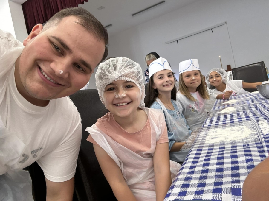 În a doua parte a programului, a fost organizat un atelier gastronomic, în cadrul căruia micuții, sub atenta îndrumare a adulților, au avut ocazia să frământe și să pregătească prescuri mici, strict demonstrative. Alături de ei a fost și socăcița satului, Anuța Mariș, care a împărtășit cu generozitate din măiestria sa.