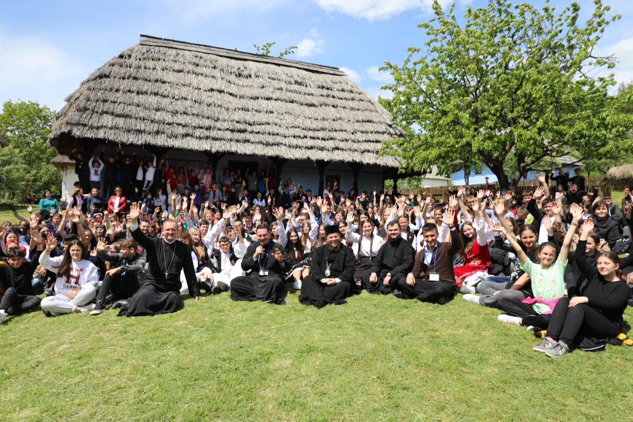 După-amiază, conform programului stabilit de către organizatori, excursia itinerantă a continuat la Muzeul Satului, acolo unde, în mijlocul tinerilor, a fost prezent Preasfințitul Părinte Timotei Sătmăreanul, Arhiereu-vicar al Episcopiei Ortodoxe Române a Maramureșului și Sătmarului.