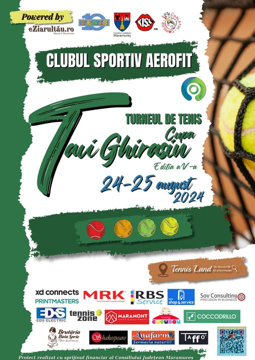 În perioada 24-25 august 2024 se va desfășura a cincea ediție a turneului de tenis PLATINUM „Cupa Tavi Ghirasin” în cadrul Clubului Sportiv Aerofit, proiect susținut financiar de Consiliul Județean Maramureș. Competiția va avea loc la terenurile de tenis Tennis Land, pe strada Nucului 9B.