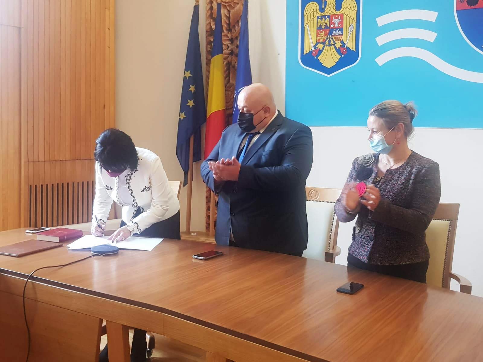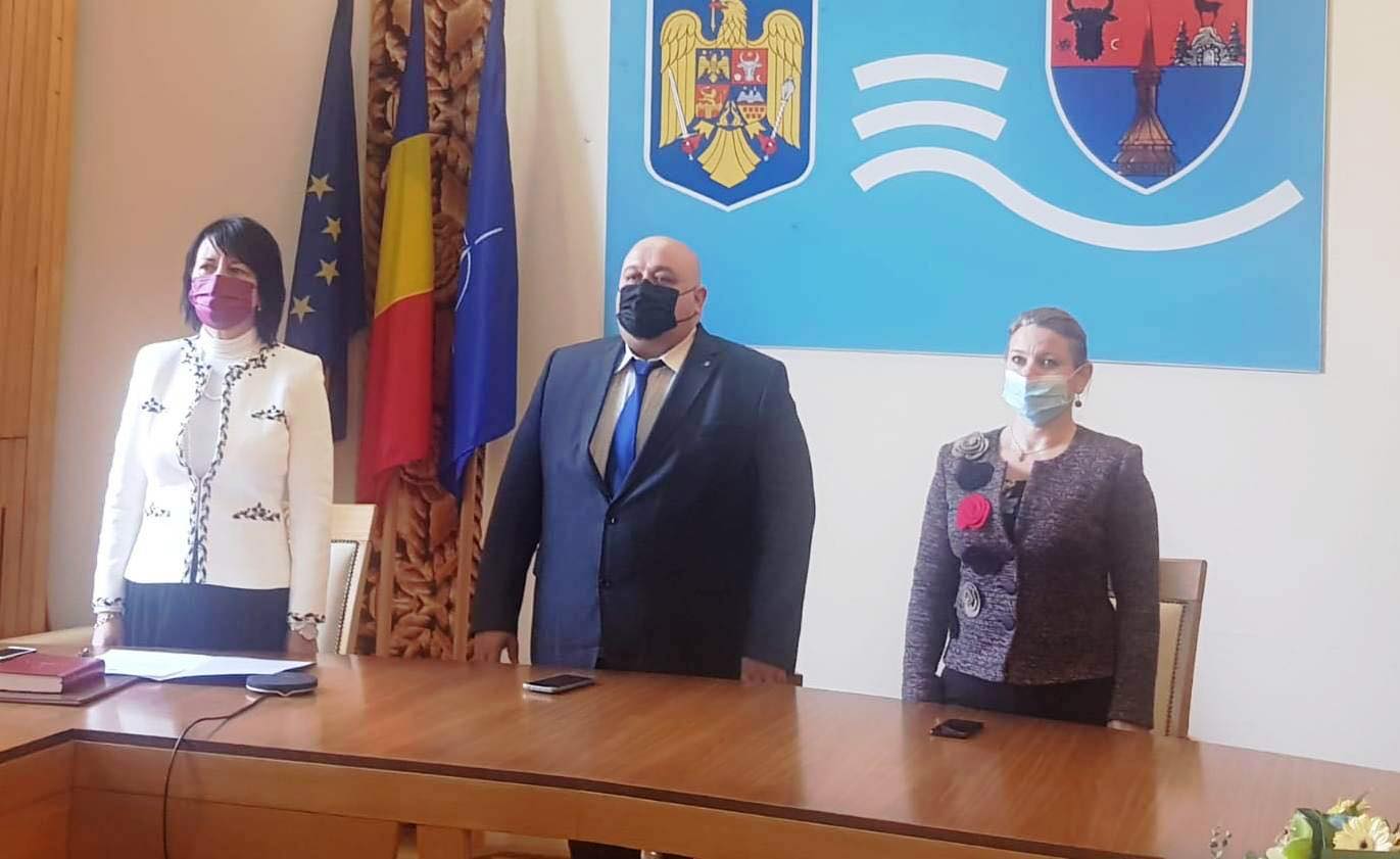 În această dimineață s-a desfășurat în sistem videoconferință, cu respectarea măsurilor de prevenire și limitare a infecției cu virusul SARS-CoV-2, ceremonia de investire în funcție a doamnei subprefect Fiorela-Crina Chilat. La ceremonia de investire din sala Palatului Administrativ au participat prefectul Rudolf Stauder, subprefectul Enikö-Erzsébet Krizsanovszki, directori ai serviciilor publice deconcentrate, primari ai unităților administrative-teritoriale, iar de la nivel central subsecretarul de stat Gheorghe Sorescu și directorul general Teodor Iulian Gheorghe, din cadrul Ministerului Afacerilor Interne.