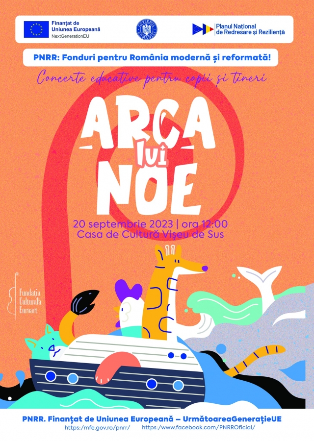 Miercuri, 20 septembrie, ora 12.00, la Casa de Cultură Vișeu de Sus va avea loc evenimentul „Arca lui Noe” – concert educativ pentru copii.