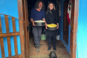 A fost o perioada care mi-a ramas in suflet, pentru ca Maramuresul mi se pare un loc binecuvantat, cu peisaje rupte din Rai si oameni care traiesc atat de frumos! Am fost intr-o zi in drumetie la Preluca Veche, spre Tg. Lapus. Am ajuns exact in Sambata Mare, cand oamenii se pregateau de Paste. Ne-am dorit sa fim niste prezente cat mai discrete, ca sa nu tulburam cu nimic ritualul lor, probabil ramas acelasi de sute de ani. Atmosfera locului mi se parea desprinsa dintr-un film – de Emir Kusturica, pe alocuri. Spre exemplu, o familie pe care am vizitat-o avea un porc adapostit intr-o Skoda veche. In casele oamenilor traiau nestingheriti catei, pisici sau closti cu pui. La un moment dat, ne-am trezit cu un porc vietnamez negru, care ni se invartea printre picioare – era animalul lor de companie. Nu pot sa descriu cat de incantati au fost copiii sa se joace cu gaini, cocosi sau caprele cu ieduti! Am vazut cum framantau femeile cozonacii in covata si am vopsit ouale impreuna. Ne-am integrat in stilul lor de trai simplu si profund totodata si am simtit mai intens bucuria apropierii Invierii.