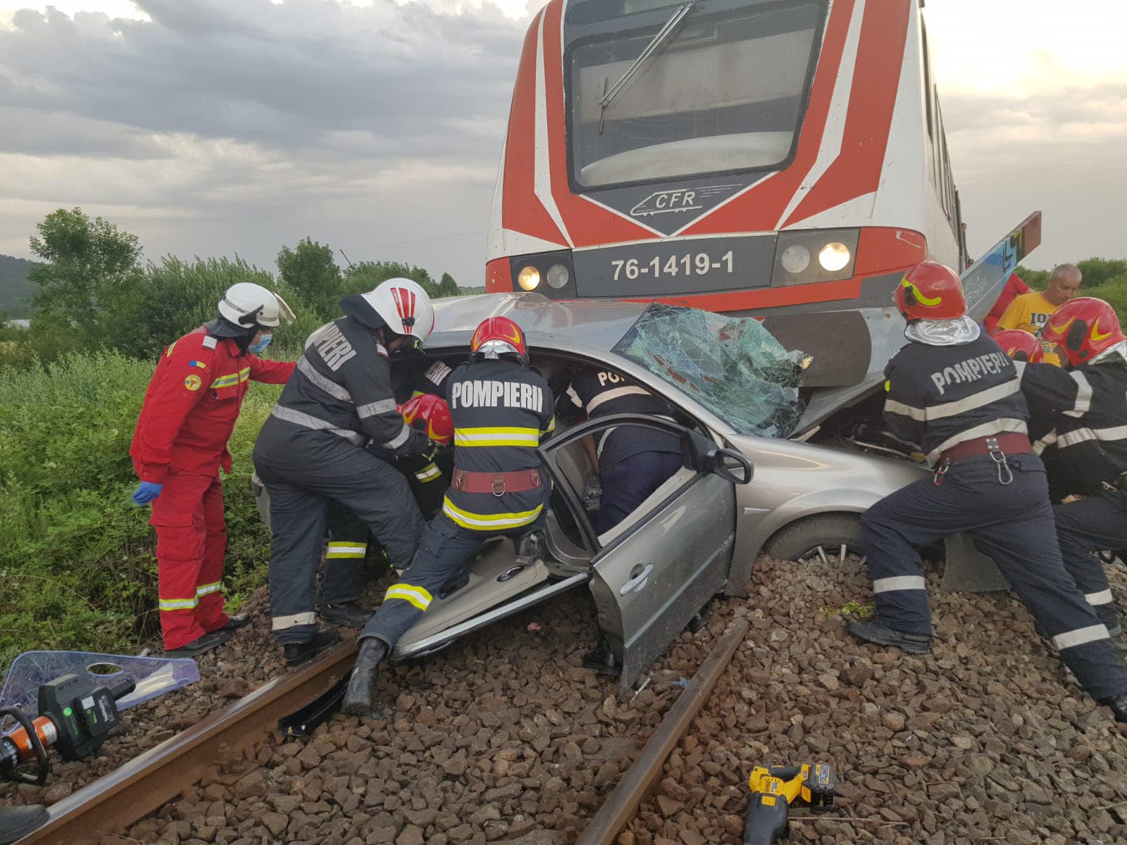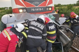 ACTUALIZARE – „În seara de vineri, 25 iunie, orele 20.36, polițiștii Postului de Poliție Transporturi Feroviare Baia Mare, au fost sesizați cu privire la faptul că între HM Bușag – Cicârlău, s-a produs un accident feroviar. La fața locului polițiștii au constatat că, la un pasaj de trecere peste calea ferată, intersecție cu un drum comunal, semnalizat corespunzător, un tren care circula pe ruta Baia Mare – Satu Mare, a surprins în gabarit un autoturism. La volan a fost identificat un tânăr de 22 de ani din Ilba, care se afla singur în autoturism. Acesta a rămas încarcerat în autoturism, fiind necesară intervenția unui echipaj de descarcerare. Tânărului i-au fost acordate îngriji medicale la fața locului, ulterior, acesta a fost transportat la spital în vederea acordării de îngrijiri medicale. Polițiștii au testat mecanicul de locomotivă cu aparatul etilotest rezultatul fiind zero, iar conducătorului auto i-au fost prelevate mostre biologice de sânge în vederea stabilirii cu exactitate a alcoolemiei. Din cauza producerii accidentului, două trenuri au avut întârzieri de 63 respectiv 161 de minute. În cauză, polițiștii continuă cercetările sub aspectul săvârșirii infracțiunii de vătămare corporală din culpă”, au arătat reprezentanții IPJ Maramureș.