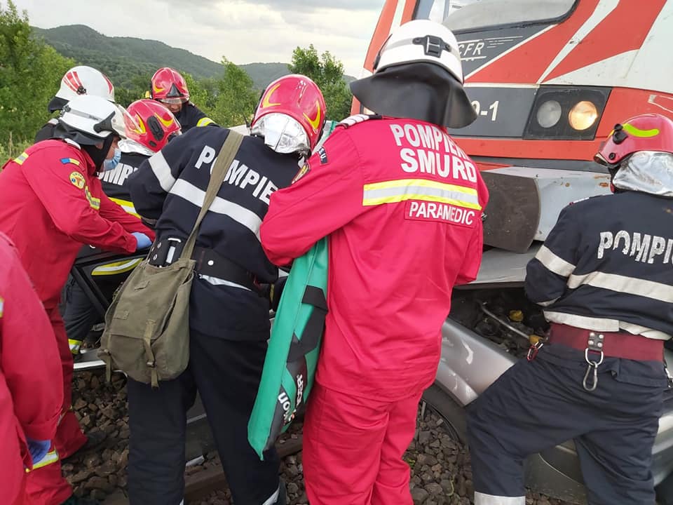 Accident feroviar în Maramureș: Mașină lovită de tren în Bușag. Victima e un tânăr în vârstă de 22 de ani. A fost transportat imediat la spital (VIDEO ȘI FOTO)
