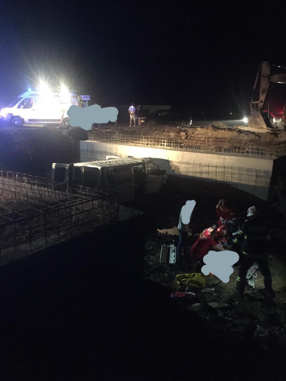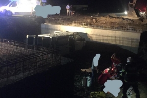 Mai exact, o autoutilitară a căzut de pe banda unui drum pe care se construiește un pod într-un canal colector, nu într-un pârâu, așa cum s-a crezut inițial, situat în apropiere.