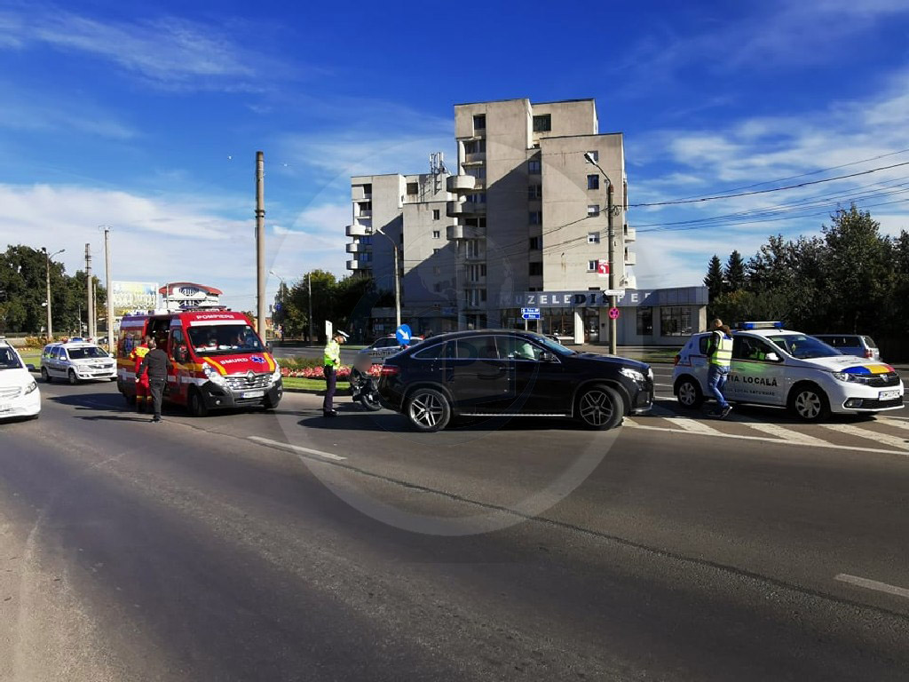 Accidentul rutier a avut loc duminică după-masa, la urcarea pe Podul Decebal dinspre Piața Romană. Potrivit primelor informații, un bărbat, în vârstă de circa 35 de ani, aflat pe o motocicletă înmatriculată în județul Maramureș a fost lovit de șoferul în vârstă de circa 45 de ani al unui autoturism de teren marca Mercedes, înmatriculat în județul Satu Mare.