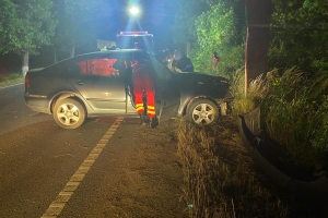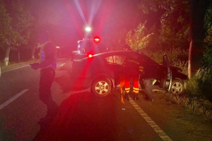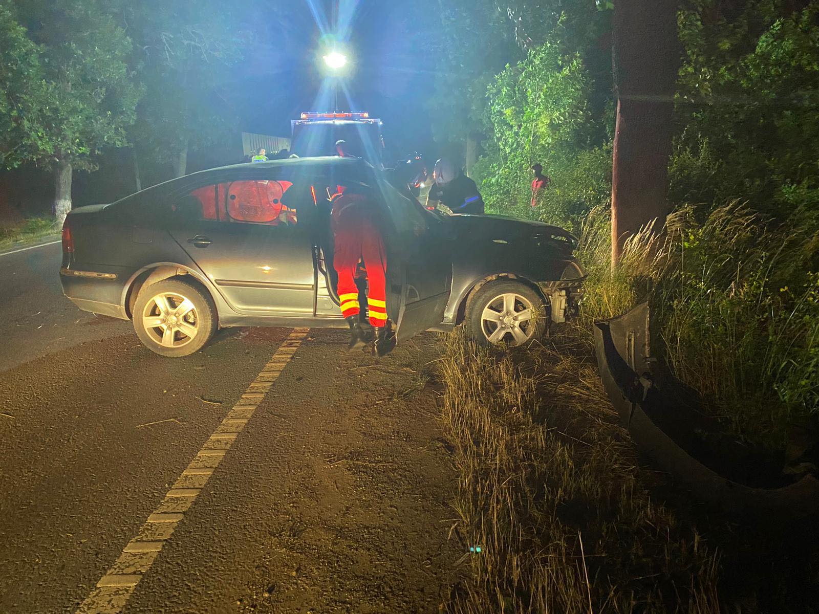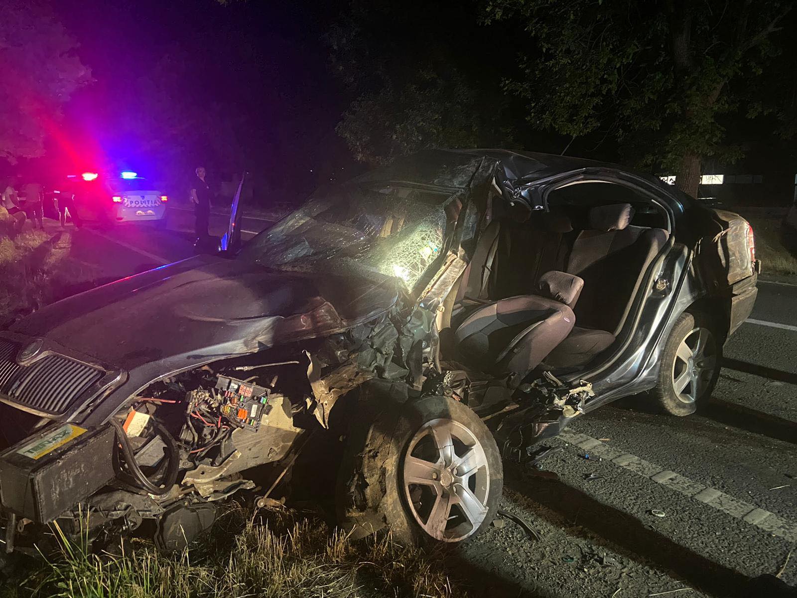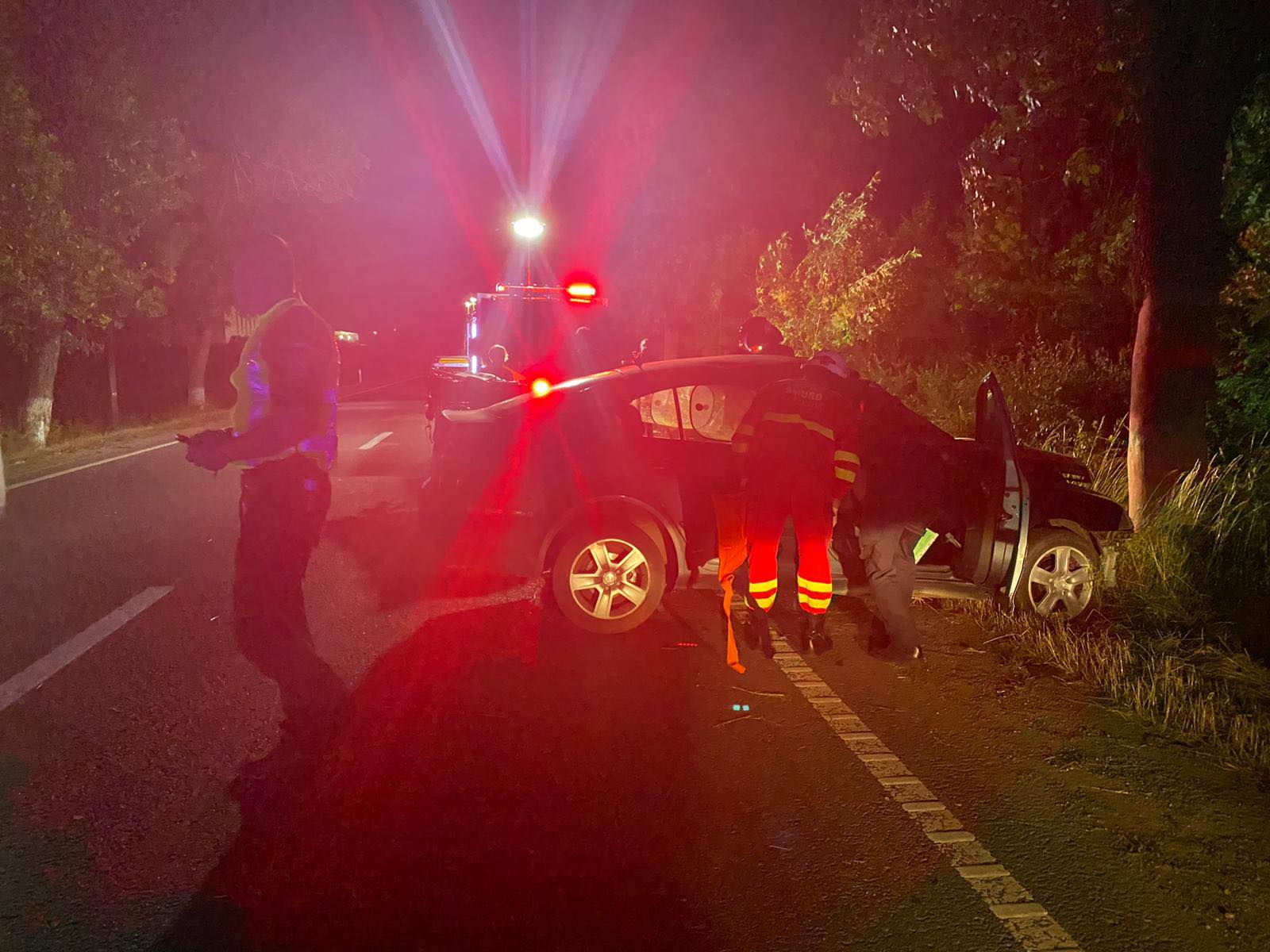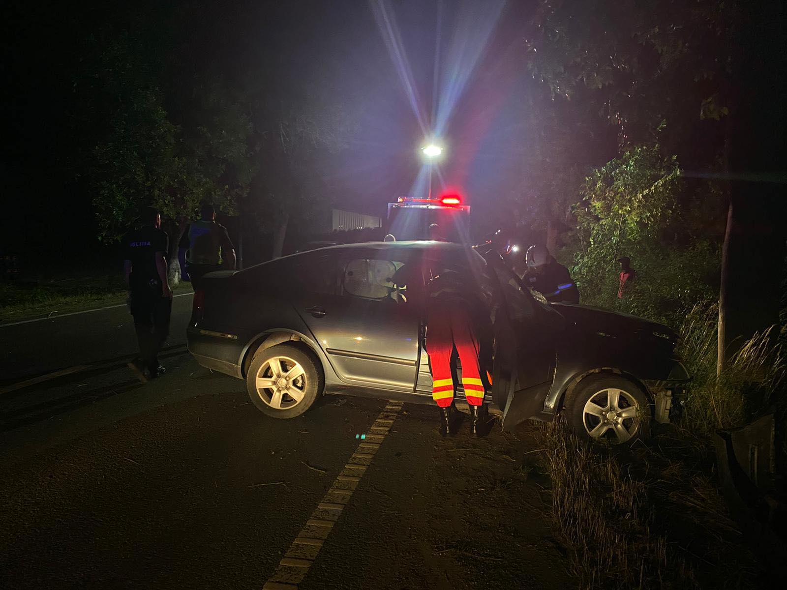 Accident violent: Un tânăr din Cicârlău a pierdut controlul volanului și s-a izbit puternic de un copac de pe marginea acostamentului DN1C (FOTO)