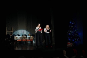 „Și am avut Magie de Crăciun, la Teatrul de Păpuși. De 21 de ani, în decembrie, mă emoționează acest spectacol, e despre ei, cei mai puțin norocoși….un spectacol caritabil. Și am avut o scenetă scrisă de adolescenți și interpretată tot de ei – Trupa Masca. Și am avut colinde în română și ucraineană, și înstrumente muzicale și adolescenți din clasele liceul nostru. Și am avut dansuri populare cu oameni faini din Centrul de zi pentru adulți cu deficiențe, str. Griviței, coordonați de Irina Vera Terebesi, o doamnă cu suflet frumos și dragă mie. Și am avut copii din Casa de tip Familial, str. Alba Iulia, pentru care a venit Moșul.