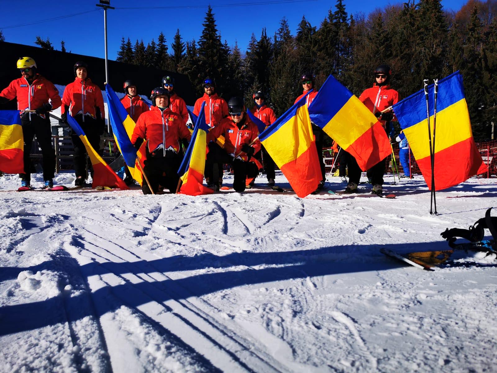 Acțiune de tradiție: Salvatorii montani maramureșeni au coborât pe pârtie, la Cavnic, ținând steaguri tricolore în mână (VIDEO ȘI FOTO)