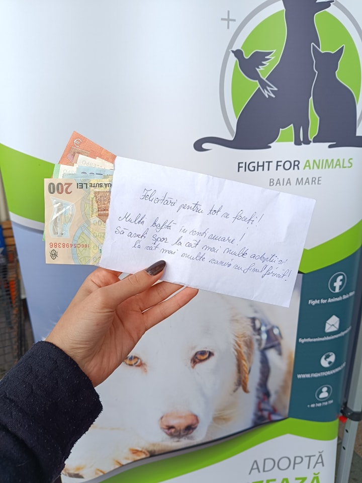 Sâmbătă, la orele după-amiezii, voluntarii Asociației Fight For Animals Baia Mare au primit mesaje și etichetări pe grupurile locale cu privire la 7 pui de cățel abandonați în parcarea unui alt centru comercial, speriați, înfometați, lipsiți de încredere, sub mașini… Voluntarii asociației au încercat salvarea lor, dar având în vedere agitația din jur, doar trei din șapte au putut fi prinși. Cățeii urlau la prima atingere și au apărut și celebrii apărători ai dreptății care îi acuzau pe voluntari că doresc să îi scoată de sub mașini. Voluntarii au promis că nu se vor da bătuți și a doua zi, duminică, au luat acțiunea de la început. Și au reușit. În cele din urmă, toți cei 7 pui de cățel au ajuns în brațele Asociației Fight For Animals Baia Mare și puși în adopție în cadrul activității derulate.