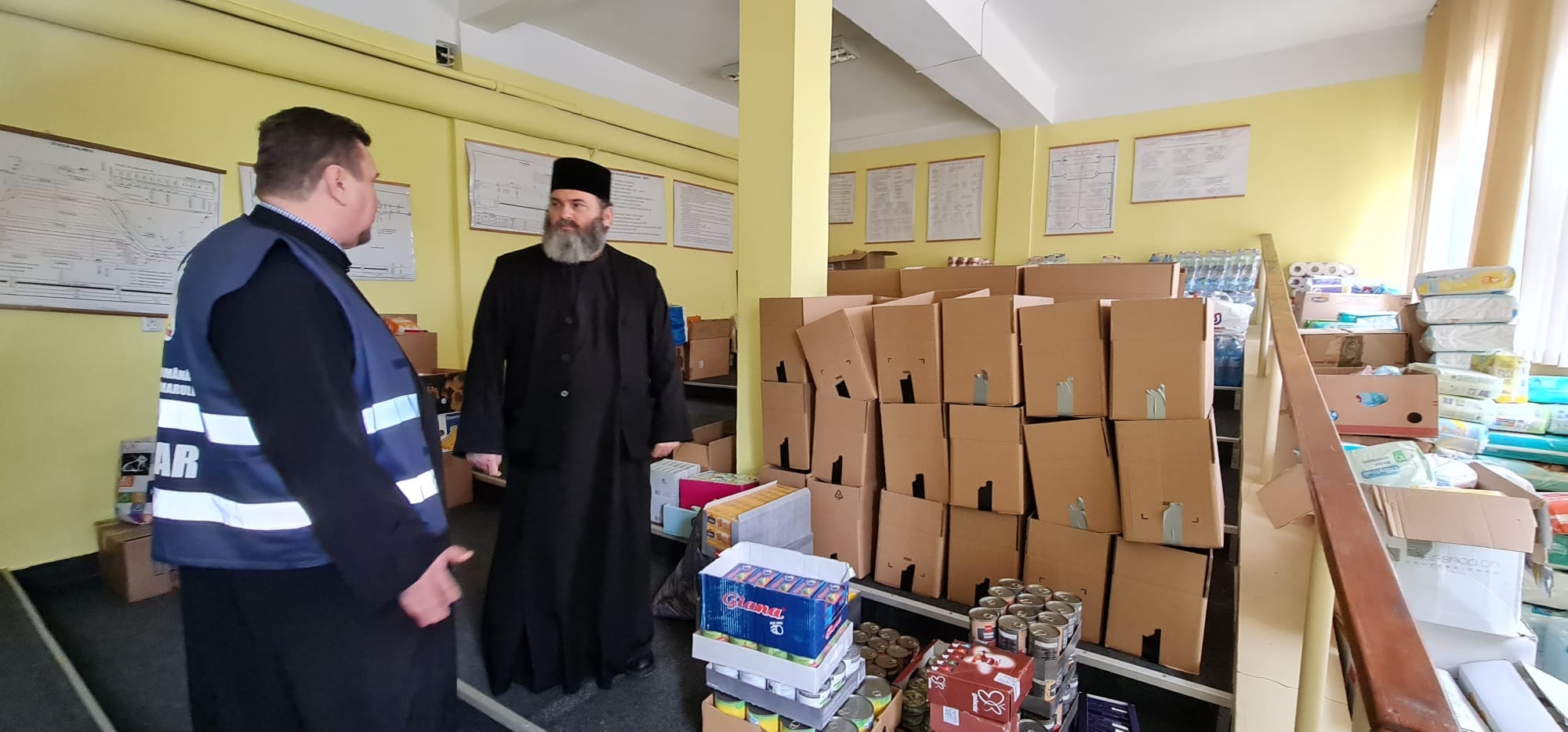 Cu binecuvântarea Preasfințitului Părinte Iustin, vineri, 8 aprilie 2022, preacuviosul părinte Casian Filip, consilier social-filantropic și misionar s-a aflat astăzi la Vama Halmeu unde a vizitat depozitul de colectare a alimentelor și a materialelor sanitare pentru refugiații ucraineni.
